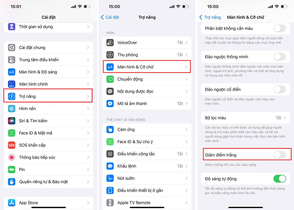 Bước 1: Mở Cài đặt > nhấn vào Trợ năng > chọn Màn hình & Độ sáng.