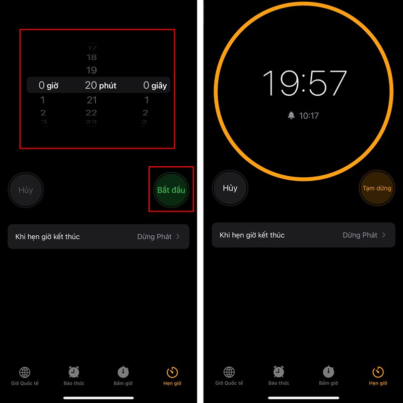Bước 2: Sau đó bạn cài đặt thời gian mà bạn muốn nghe nhạc > Nhấn Bắt đầu > Khi thời gian chạy hết thì cũng là lúc nhạc sẽ dừng phát đó nhé.